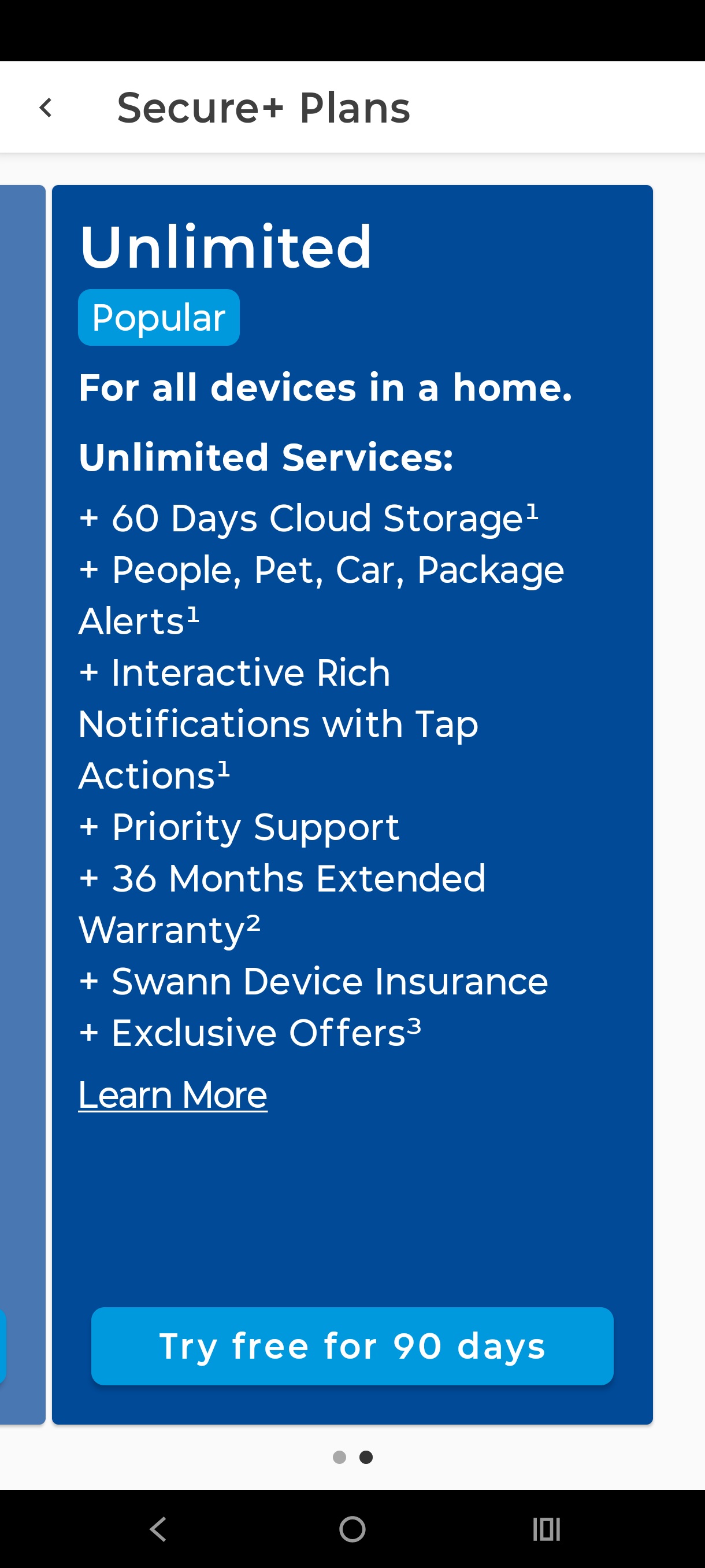 • Unlimited: All Swann devices $14.99 per month or $149.99 per year.