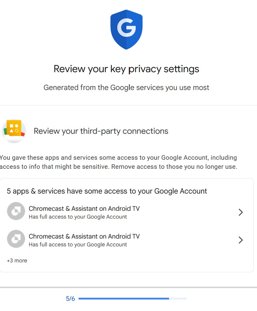 Google is to be congratulated on the Security Checkup ‘Wizard’ as it makes it very simple to check key settings.