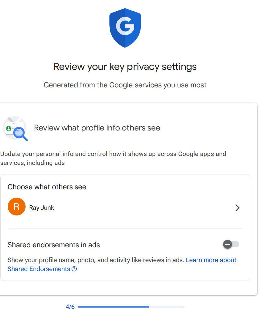 It guides you through things like how to recover an inactive account (essential for us oldies). It then helps you review your key privacy settings. Each screen has a sub-screen where you turn things off.