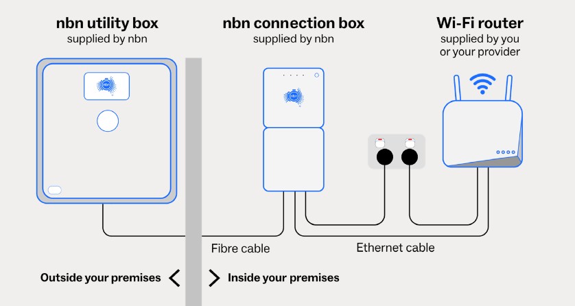 NBN will place the external box at the point closest to the fibre pit on the footpath. It then drills through the wall to place a connection box inside. This is often in the garage or another front-of-house room.