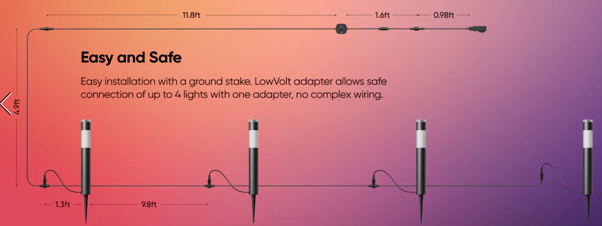 These are DIY – screw in the bottom ground spike, lay out the 10m main cable with four light outlets, push the spike into soft ground, and plug in the power adapter replete with another 5m extension cable. Load the Eufy app, connect to W-Fi and then explore the many, many themes and presets or make your own.