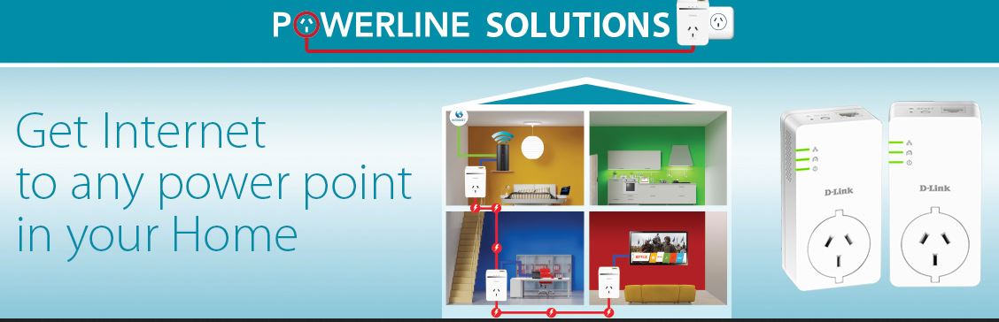 D-Link and TP-Link have Powerline adapters. I recommend the AV 2000-speed TP-Link TL-PA9020P Kit, which is $198 at Harvey Norman.