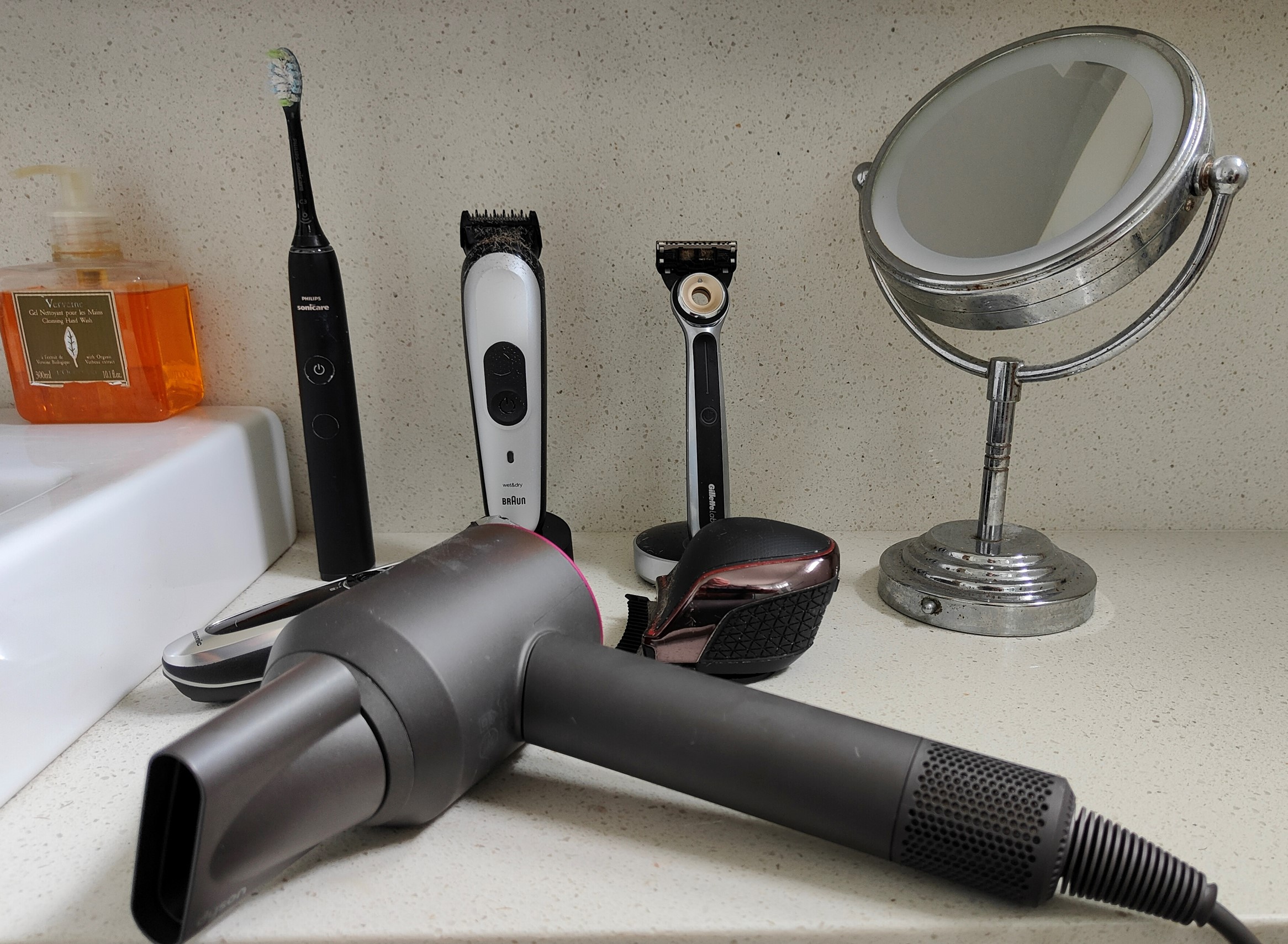 Let’s assume you have at least two smart toothbrushes, a hairdryer, a styler/curler, a rechargeable razor, a beard trimmer, a smart scale, a makeup magnifying mirror, a smart speaker, and possibly a smart mirror and a beauty storage fridge (yes, they exist).