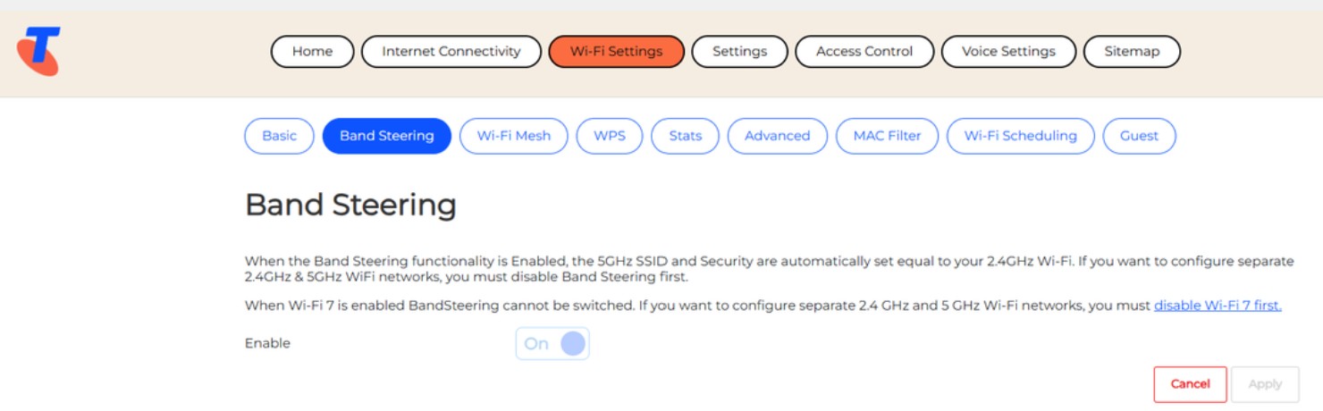 If you Disable Bandsteering, you disable Wi-Fi 7 features