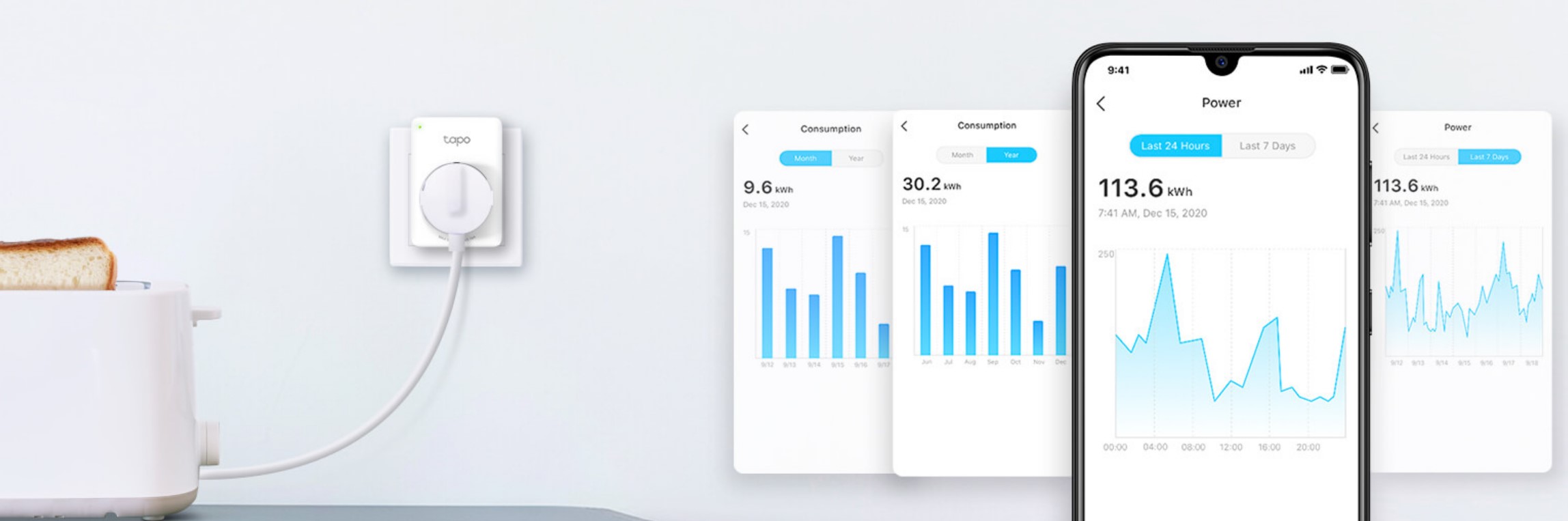 The TP-Link Tapo P110 measures 240V wattage or kilowatt hours (kWh) of any device plugged into it. It also acts as a Wi-Fi smart switch.